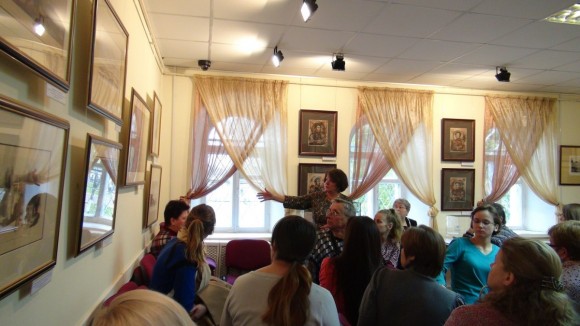 После презентации выставки заведующая научно-экспозиционным и выставочным отделом музея-заповедника «Бородинское поле» Елена Семенищева подарила Рузскому краеведческому музею подарки: открытки и книги.