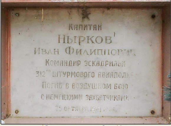 Здесь покоится военный летчик капитан И.Ф.НЫРКОВ. 2016