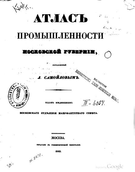 Приведен указатель фабрик Московской губернии по уездам, в том числе по Рузскому и Можайскому уездам за 1843 год.