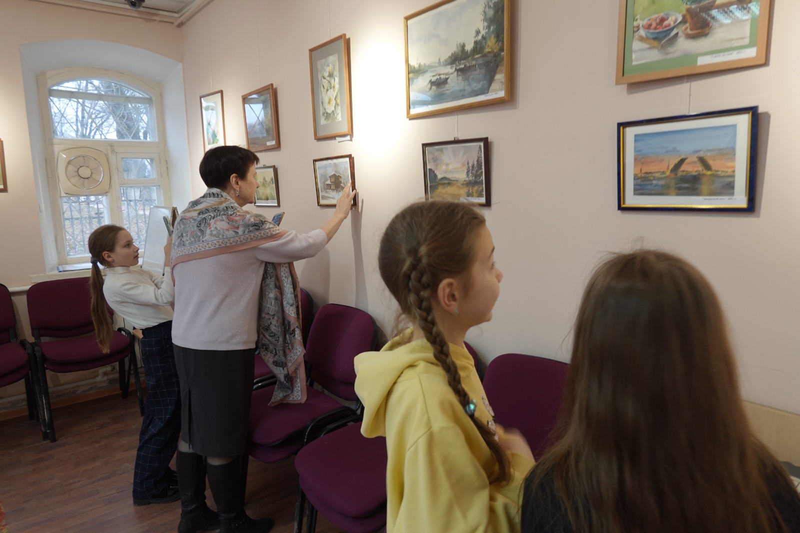 Учащиеся Центра детского творчества на выставке картин Аллы Хайдаршиной. 30.03.2023.