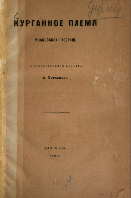 Книга о раскопках курганов в уездах Московской губернии с целью сбора краниологического материала. Краниология - научная дисциплина о вариациях формы черепа. Полученные результаты дали возможность собрать так называемую курганную коллекцию Московской губернии для дальнейших антропологических исследований.