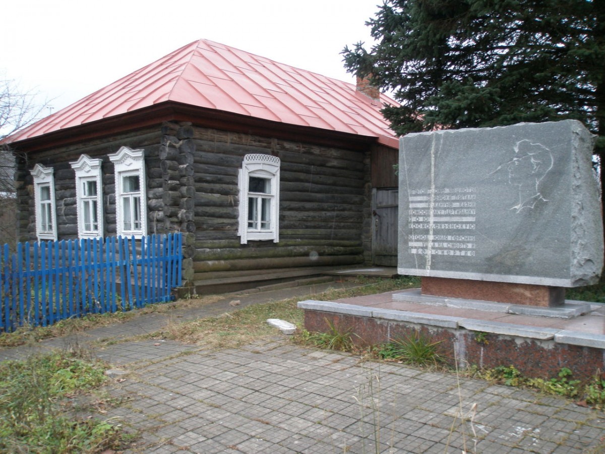 Филиал музея - дом П.Я.Кулик. Стела из серого гранита напоминает, что в этой избе Зоя провела последнюю ночь перед казнью.