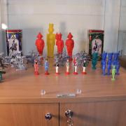 Фигурки разнообразны как по размеру, так и по виду материалов, из которого они изготовлены. Здесь и традиционные сплавы на основе олова, бронзы, мягкая и жесткая пластмасса, модурит, резина, бумага, и исконно русский материал – дерево.