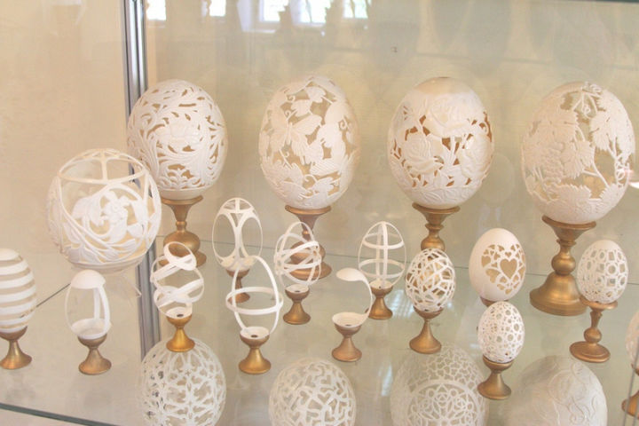 – Для меня сложнее всего – нарисовать на яйце изображение, которое потом нужно будет вырезать. Я не художник, и поэтому приходиться расчерчивать яйцо на полосы, квадратики, а потом наносить рисунок. Свою работу я облегчил, как мог: обзавелся лупой, изготовил специальный стол для работы. От страусиных яиц очень много пыли. Раньше мне приходилось пользоваться медицинской маской, а сейчас я сделал специальную вытяжку.