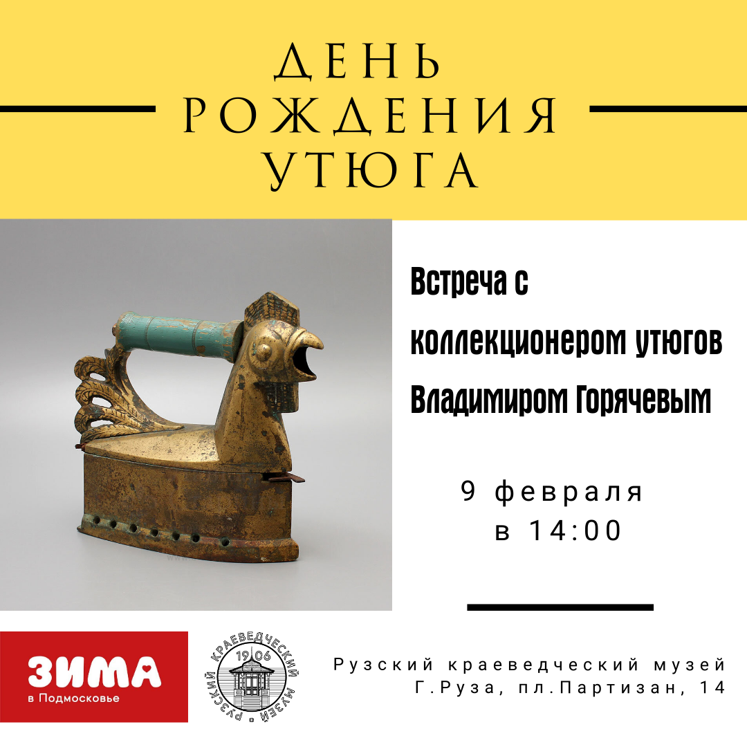 10 февраля отмечается День рождения утюга, так как первое документальное упоминание об утюге датируется 10 февраля 1636 года. Эту запись нашли в царской книге регистрации расходов. В преддверии праздника Рузский краеведческий музей приглашает жителей и гостей Рузы на встречу с коллекционером утюгов Владимиром Горячевым, которая состоится в музее 9 февраля в 14:00.