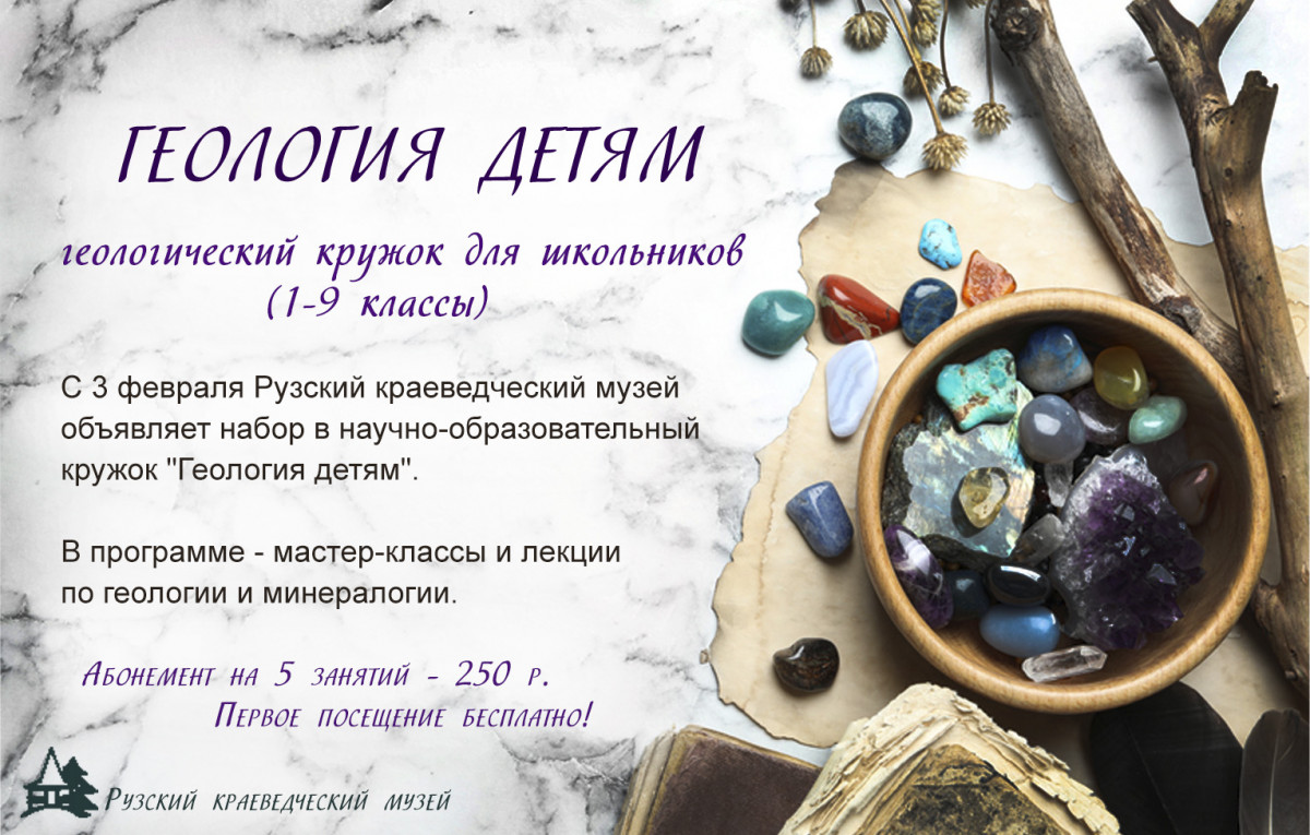 Рузский краеведческий музей объявляет набор школьников 1 - 9 классов в научно-образовательный кружок «Геология детям».
