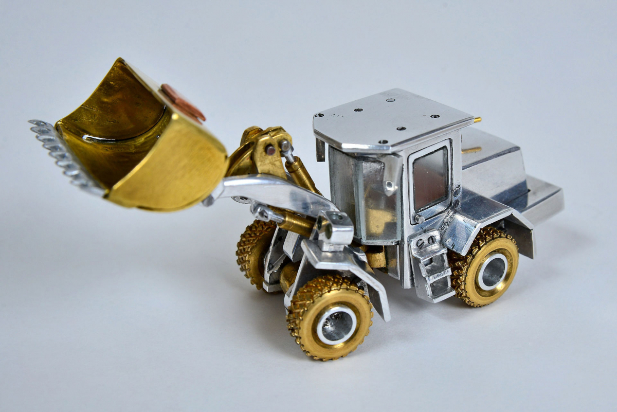 Автор считает, что грация может быть не только у легковых автомобилей, но и у экскаваторов. Его работы действительно утонченные. За четыре года он собрал подъемный кран, экскаватор, колесный погрузчик, настольные и миниатюрные весы, а также шкатулку «Скорая помощь».