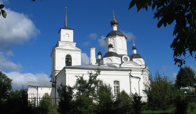 На картине изображен храм Димитрия Солунского. Он был построен в 1792 году тщанием прихожанина, мещанина Михаила Дмитриевича Брюшкова, Два придела храма пристроены усердием помещицы Рузского уезда Елизаветы Петровны Арсеньевой в 1848 году.