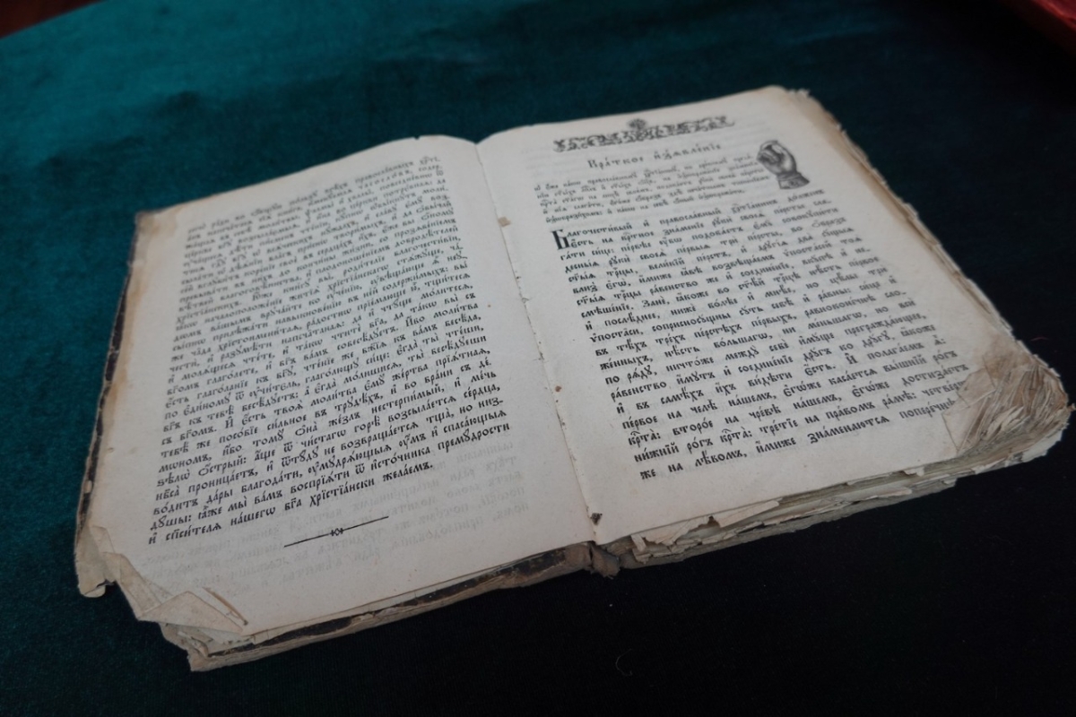 В нашем музее хранится учебный часослов для начальных сельских школ. По этой книге дети обучались грамоте: запоминали буквы и цифры, учились читать и писать.