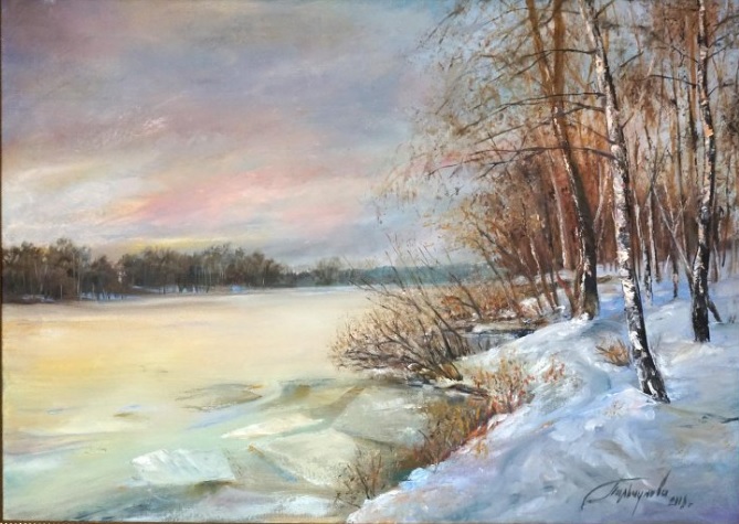 Картина «Весна идет» принадлежит перу Татьяны Пальчуновой. Художница живет в Рузе, является членом Союза художников России (с 2014 года).