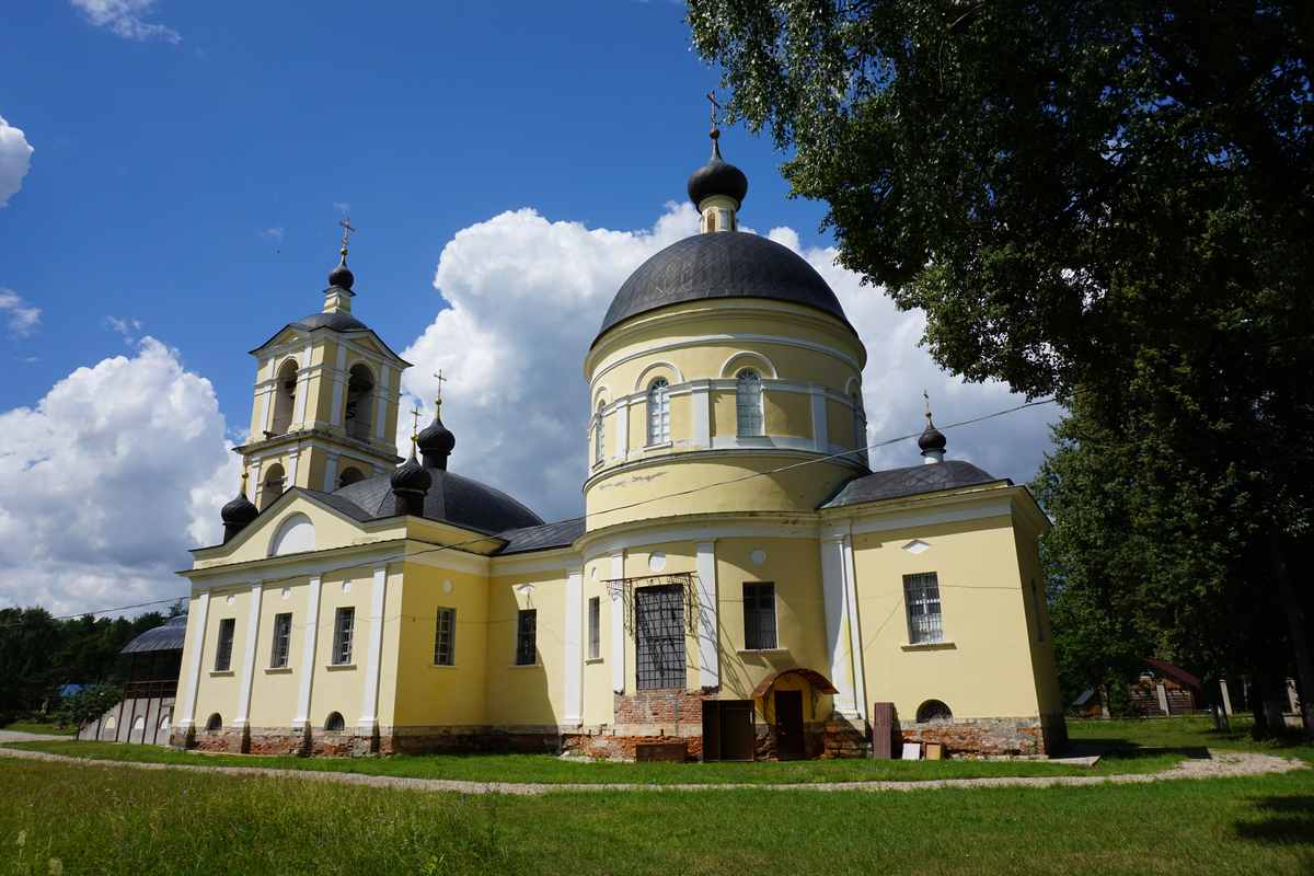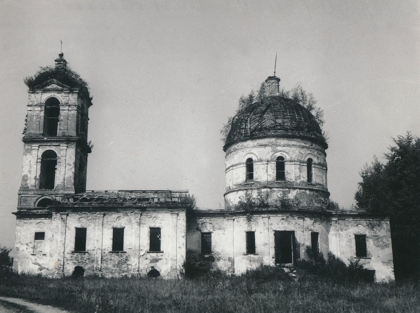 В 1757 году помещик М.В. Сушков построил в селе вместо обветшалой старой новую деревянную церковь Всемилостивого Спаса. Эта церковь служила прихожанам почти столетие, хотя уже через 50 лет новый помещик – надворный советник П. Б. Белавин начал возводить новый каменный храм. Из-за нехватки средств строительство дотянулось до осени 1812 года, когда в результате наполеоновского нашествия московская усадьба надворного советника сгорела, нанеся его благополучию значительный ущерб.
