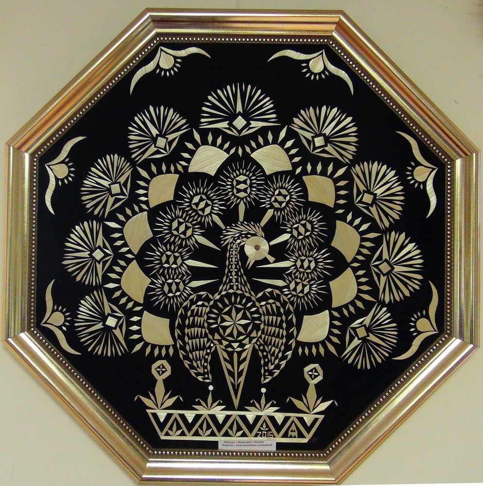 Панно "ЦВЕТ ПАПОРОТНИКА" ( аппликация соломкой)