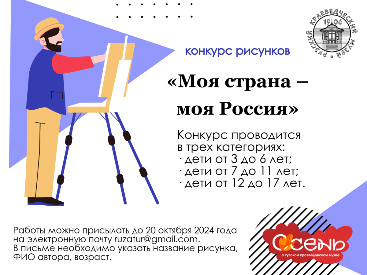 Рузский краеведческий музей объявляет конкурс рисунков «Моя страна – моя Россия» среди учащихся общеобразовательных школ, посвященный Дню воссоединения России и ДНР, ЛНР, Запорожской и Херсонской областей.