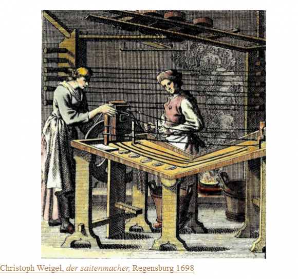 Гравюра Кристофа Вейгеля. Изготовление струн. Регенсбург (Германия). 1698