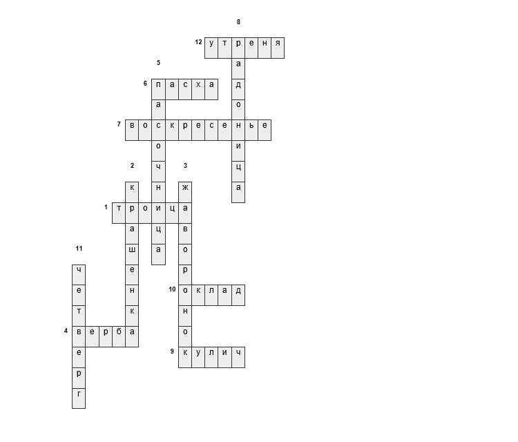 12.Пасхальное общественное богослужение, которое начинает после крестного хода в притворе благословением и пением пасхального тропаря.