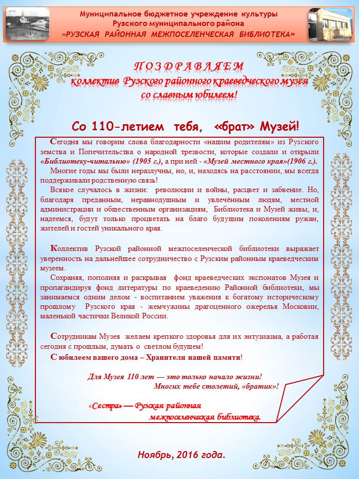 Оригинальным и запоминающимся прозвучало поздравление от Рузской межпоселенческой библиотеки.