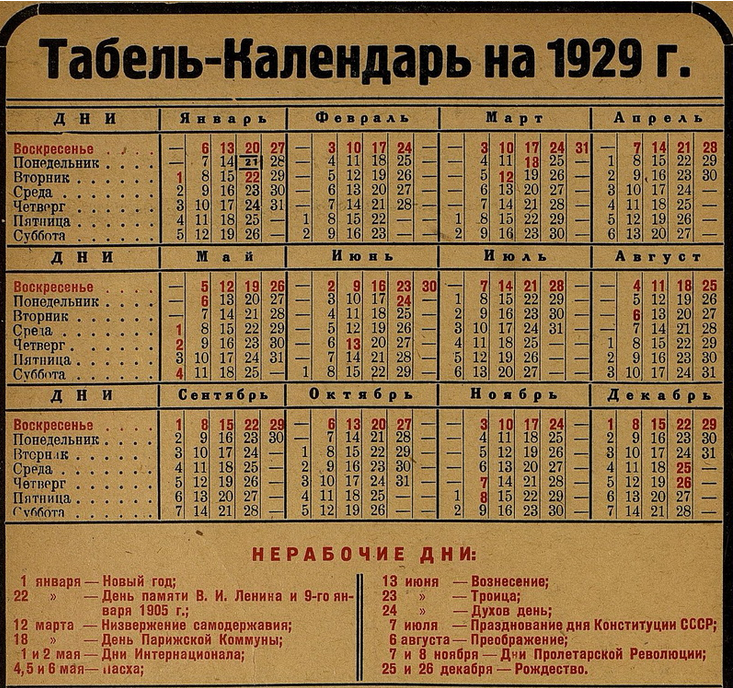 В царской России праздник Вознесения был праздничным (неприсутственным) днем. Здесь интересно отметить, что вплоть до 1930 года, года «Великого перелома» праздник Вознесения отмечался в календарях как нерабочий день, наряду с Днем Интернационала, Парижской Коммуны, Пасхой и Новым годом.