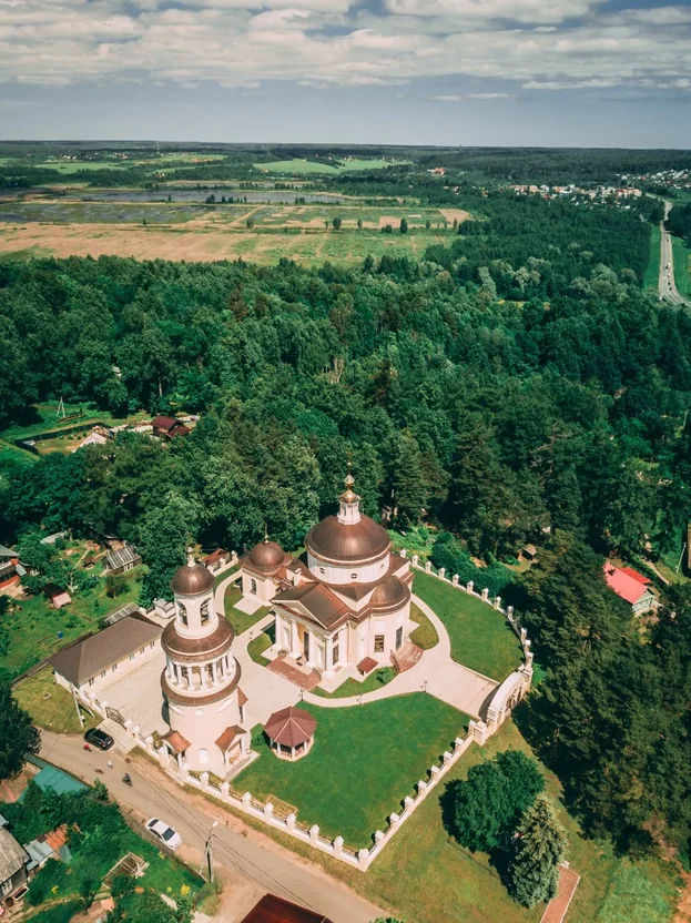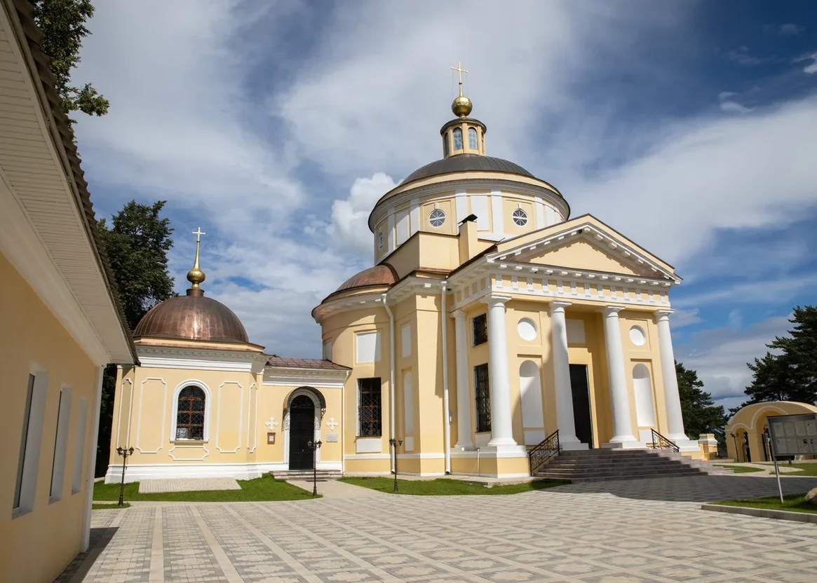 Храм представляет собой замечательный образец раннего русского классицизма. В 19 веке к нему была пристроена усыпальница, где позднее было захоронено 12 потомков княжеского рода.