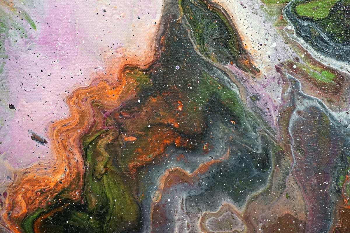 – Мы начали рисовать в технике акриловых заливок, но нам нравится экспериментировать с красками, поэтому используем и строительные эмали, и колерные пасты. Для достижения эффекта кружевного узора добавляем силикон. Обычно пишем картины вместе и получаем удовольствие от процесса. На выставке представлены работы, которые украшают стены нашего дома, – рассказала Анна.