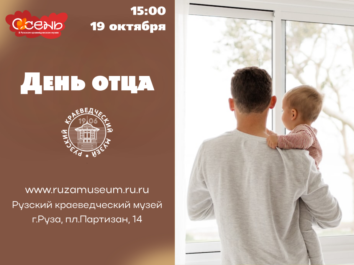 19 октября Рузский краеведческий музей приглашает на мероприятие «Папа - мой защитник!», посвященное Дню отца. Вас ждут игры и викторины, а также мастер-класс «Портрет папы».