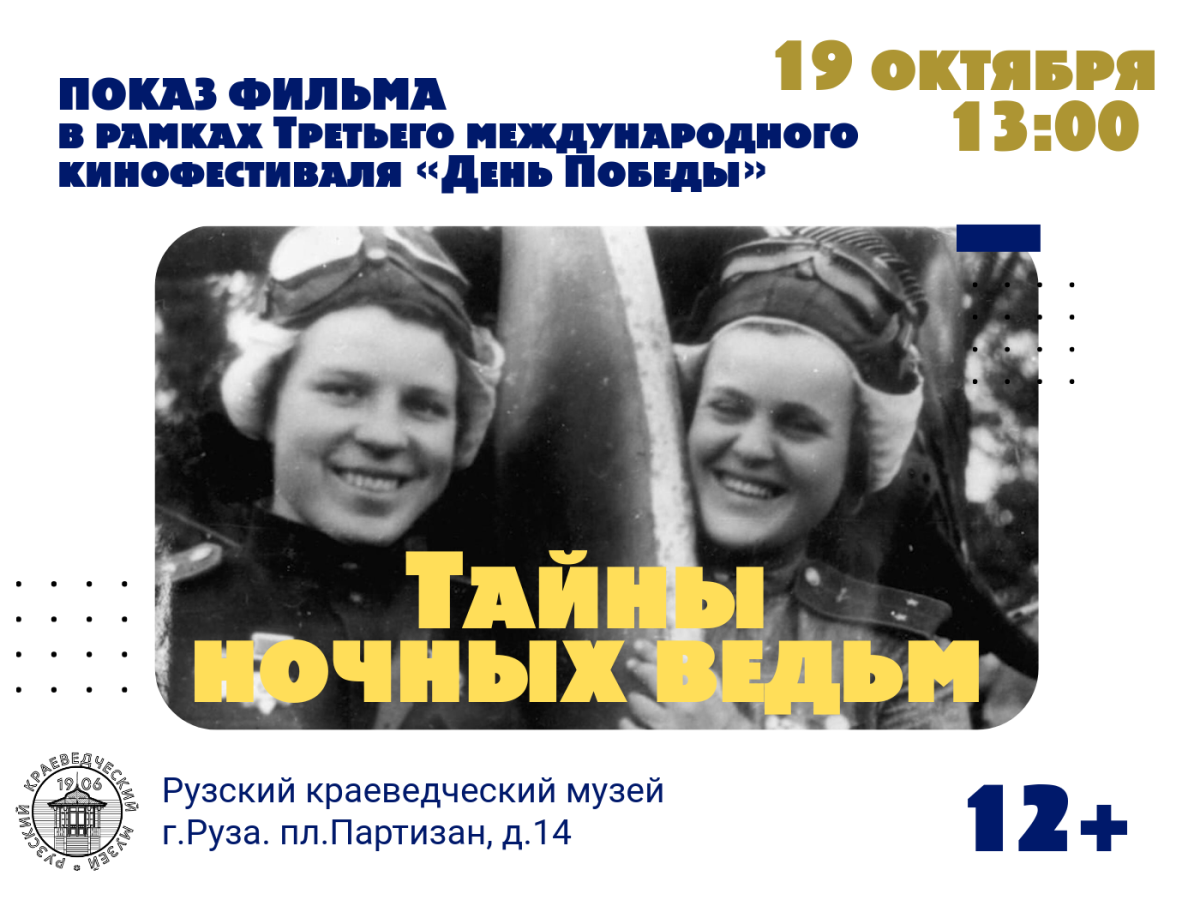 19 октября в 13:00 в Рузском краеведческом музее состоится показ фильма «Тайны ночных ведьм» в рамках Третьего международного кинофестиваля «День Победы».