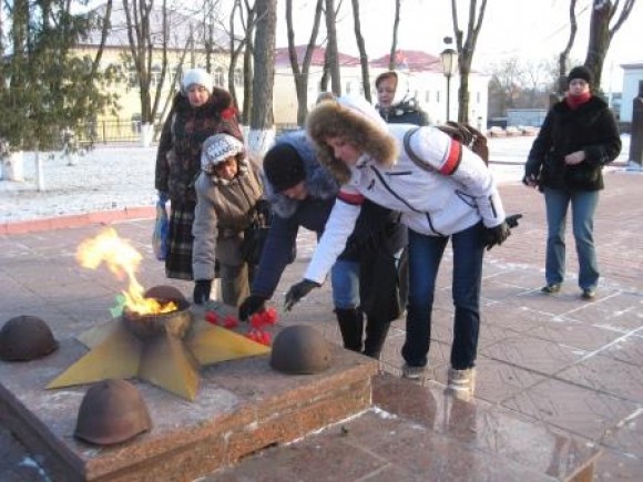 Возложение цветов у мемориального комплекса