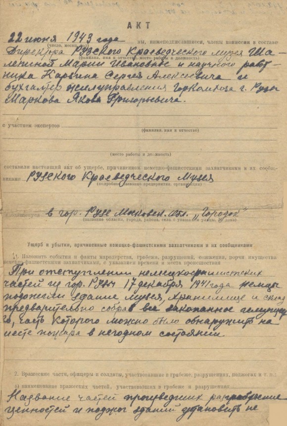 29 мая 1943 г. решением Мособлисполкома №787 была создана Московская областная чрезвычайная комиссия по установлению и расследованию злодеяний немецко-фашистских захватчиков.