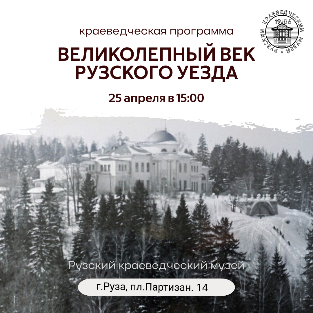 Рузский краеведческий музей открывает новый проект «Великолепный век Рузского уезда» – это цикл краеведческих программ, которые перенесут вас в прошлое, познакомят с историей дворянских усадеб на территории округа и жизнью их владельцев.