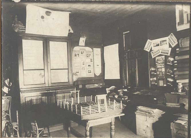 В 1911 году при библиотеке – музее была построена «местная этнографическая изба». Фасад её был оформлен по рисунку С.С.Елагина, использовавшего сохранившиеся в Хотебцовской волости образцы орнаментов резьбы по дереву. Учительницей Баклановой были собраны все предметы уходящего крестьянского быта.