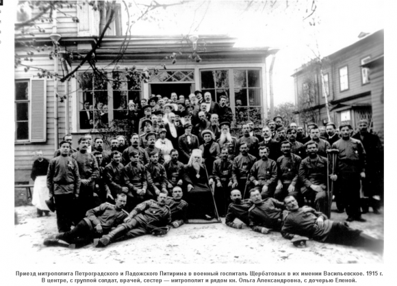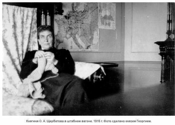 В едином патриотическом порыве вся семья Щербатовых приняла участие в работе на победу России. Княгиня Ольга Александровна лично руководила санитарным поездом, ее ближайшими помощниками стали дочь Елена и младший сын Георгий, не однажды они попадали под обстрел.