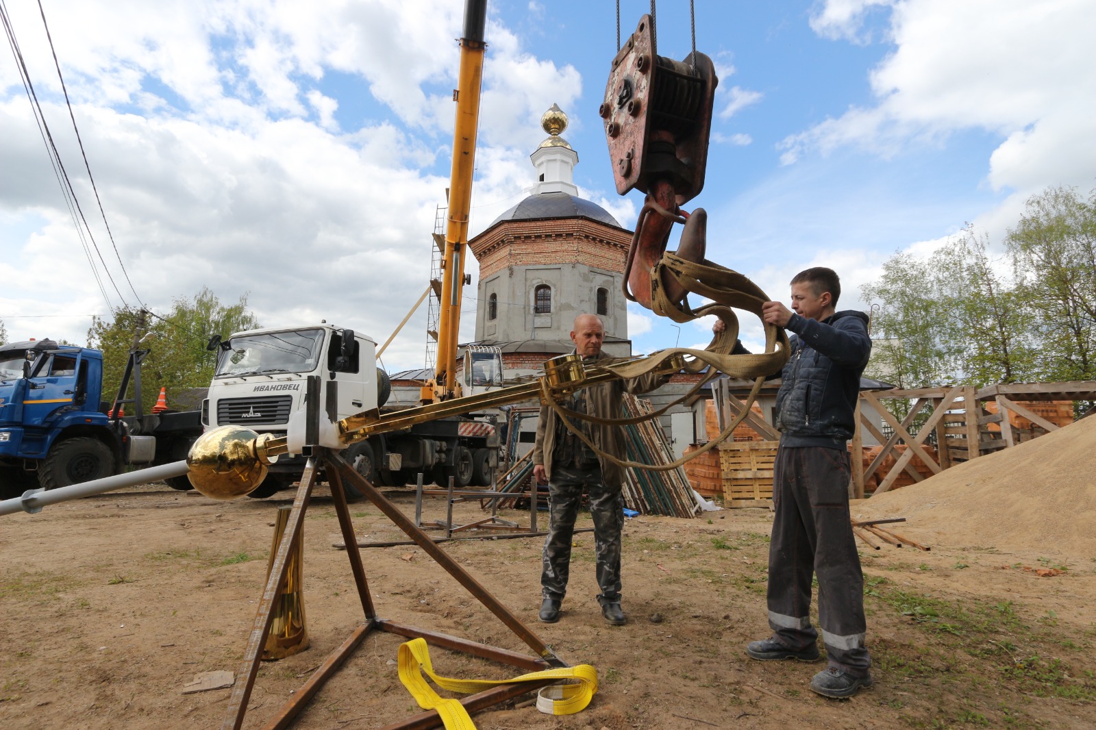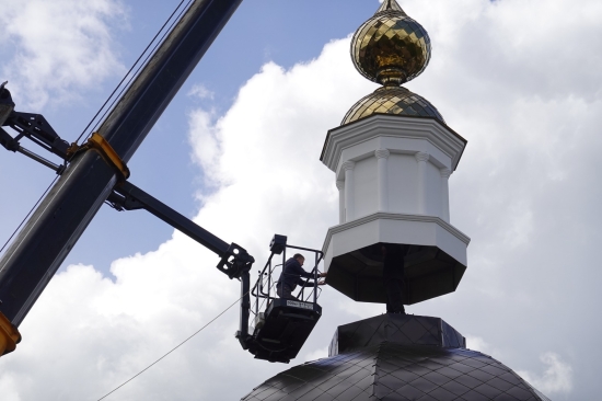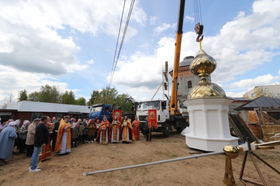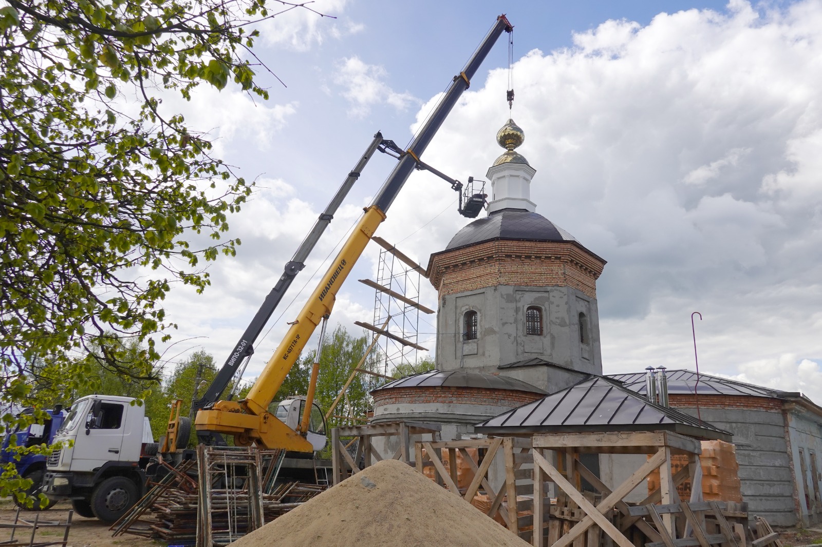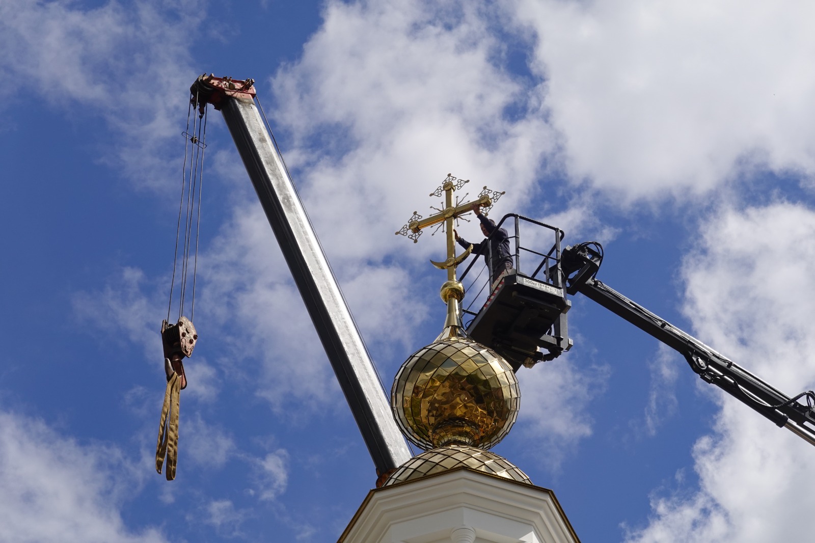 Установка креста на Борисоглебском храме в Рузе, 15 мая 2024