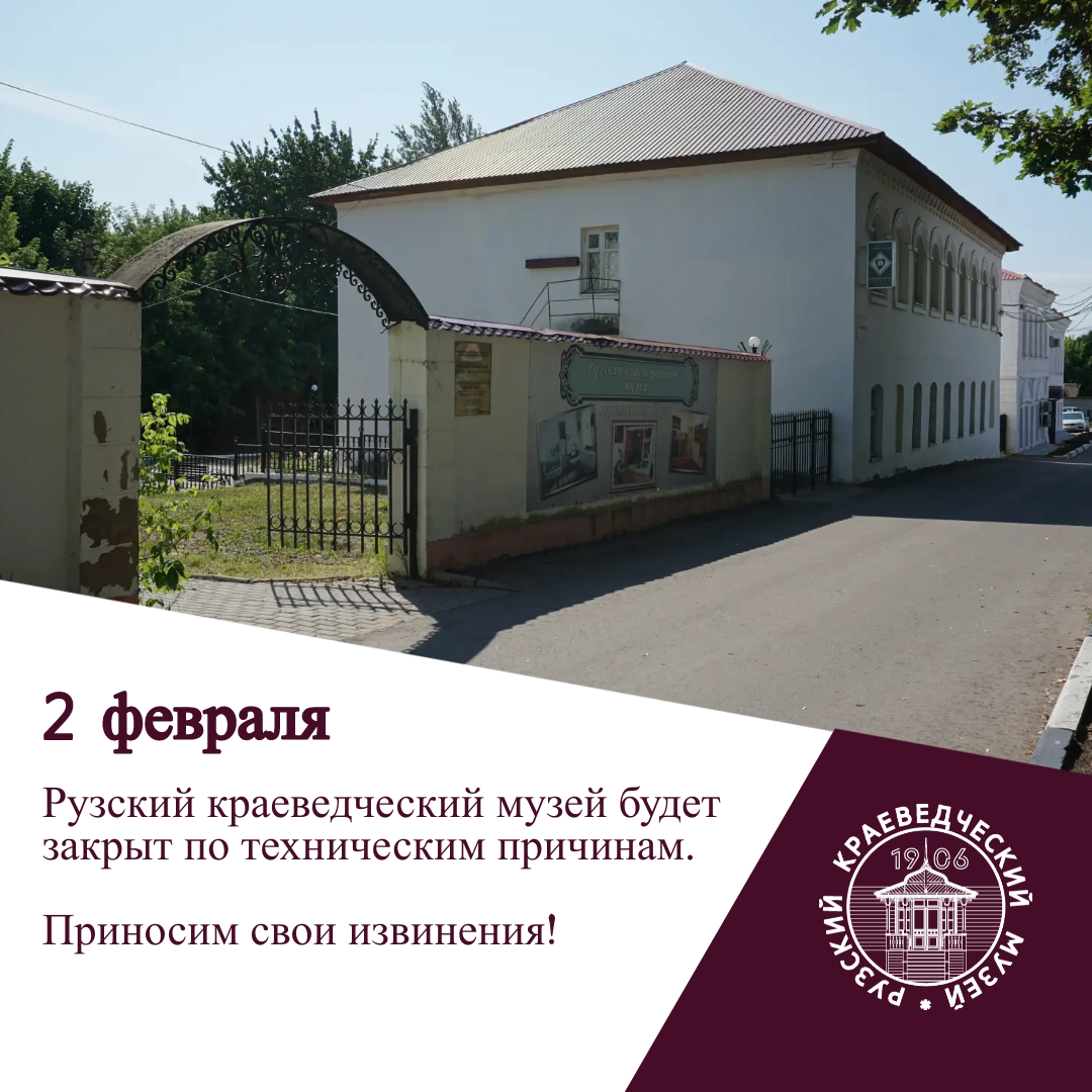 2 февраля Рузский краеведческий музей будет закрыт по техническим причинам.