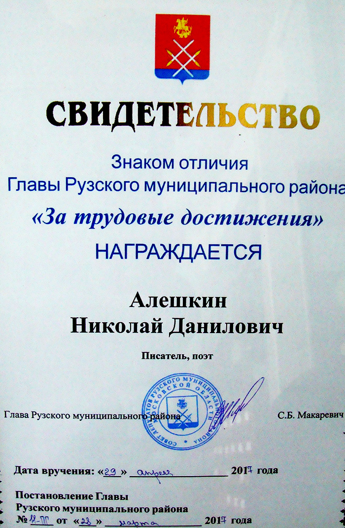 Н.Д. Алешкин – член Союза писателей России (2008), автор шести поэтических сборников, составитель творческих альманахов.