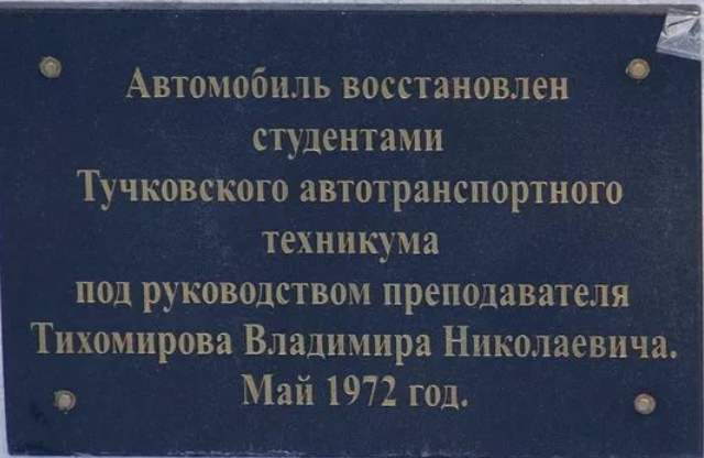 Памятная доска на памятнике автомобилю-воину