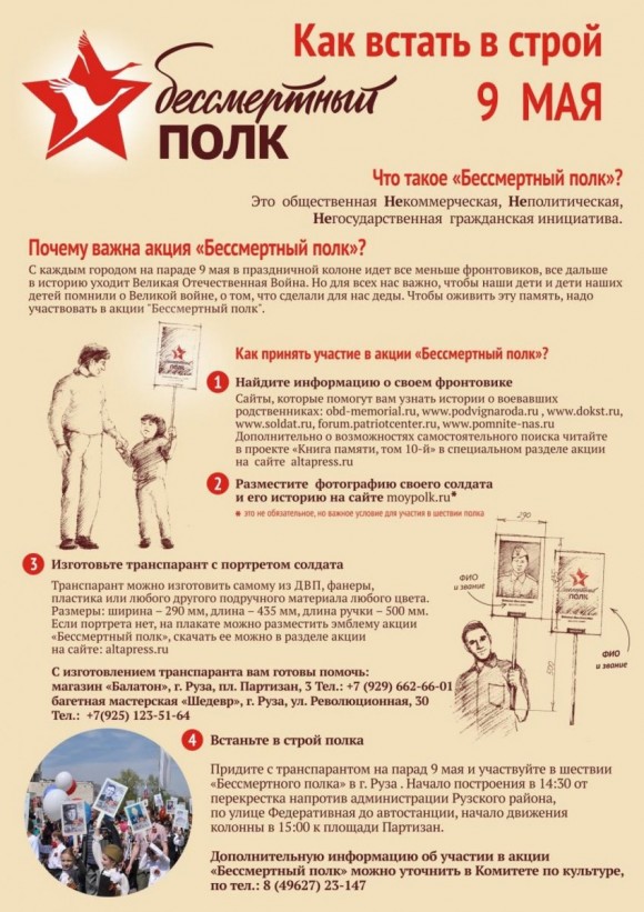ПРИГЛАШАЕМ всех жителей и гостей города Рузы принять участие в шествии «Бессмертного полка» 9 Мая