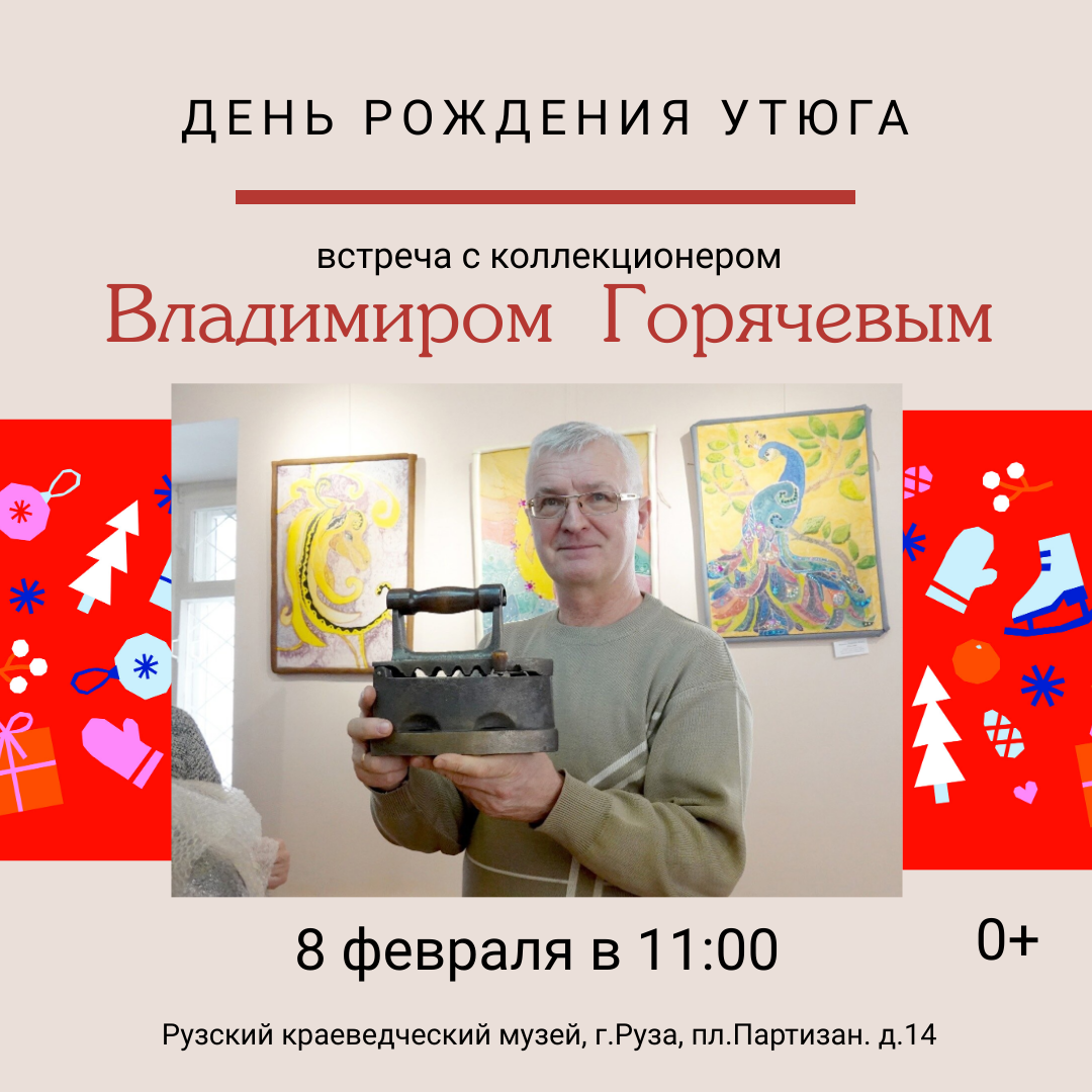 8 февраля в 11:00 Рузский краеведческий музей приглашает жителей и гостей Рузы на встречу с коллекционером утюгов Владимиром Валентиновичем Горячевым, которая будет приурочена ко Дню рождения утюга.