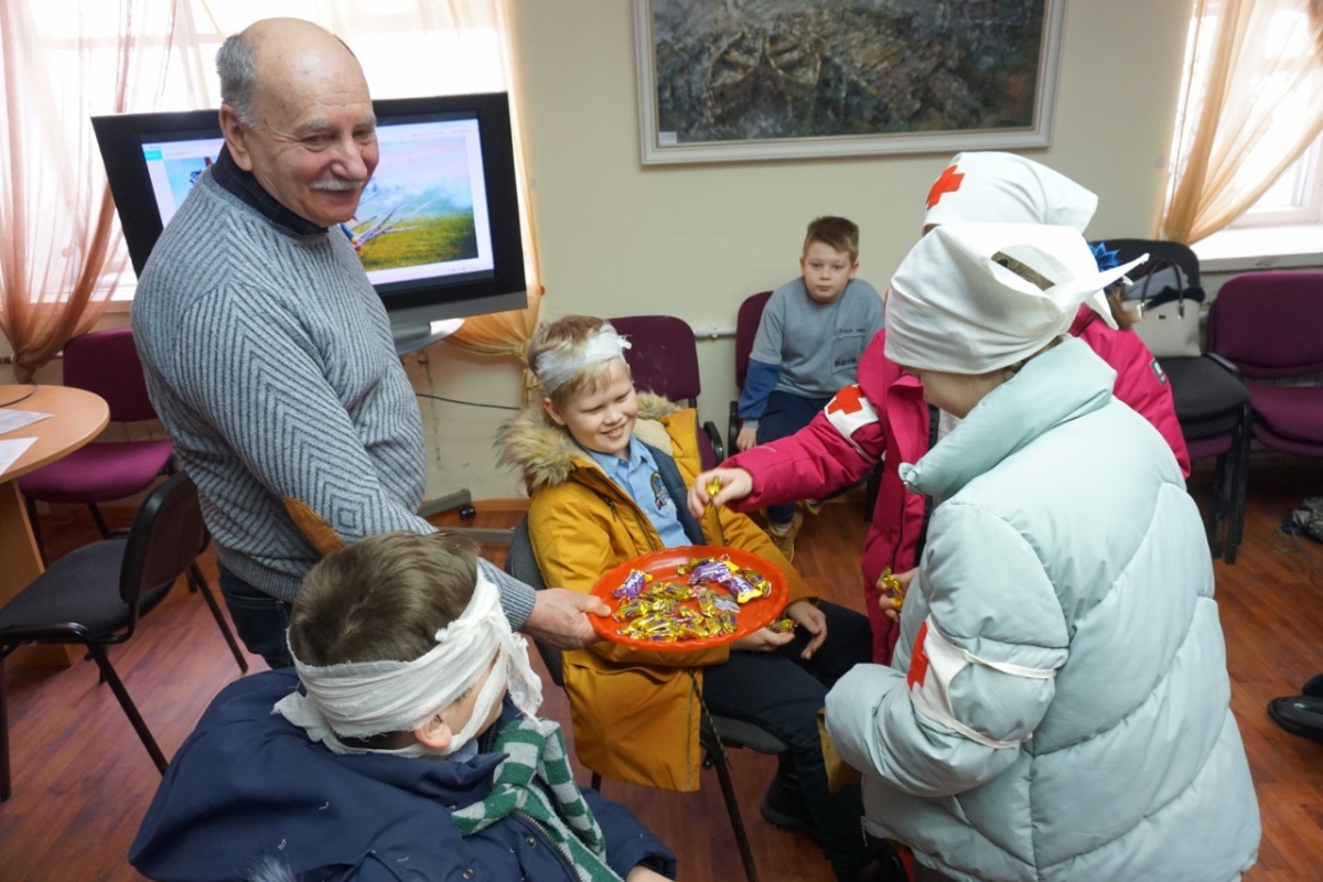 Ребята участвовали в конкурсах и викторинах на военную тему. Сотрудники музея Эдуард Байдаков и Геннадий Нокель прочли для них лекцию об истории создания Российской армии и рассказали о том, как появился праздник «День защитника Отечества».