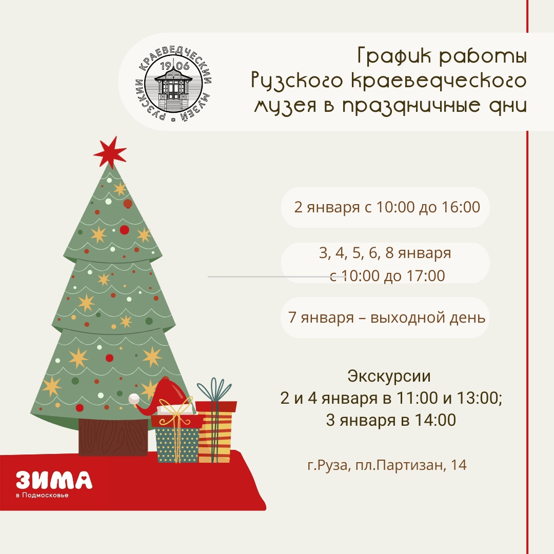 Уважаемые посетители! В праздничные дни Рузский краеведческий музей будет работать по следующему графику: