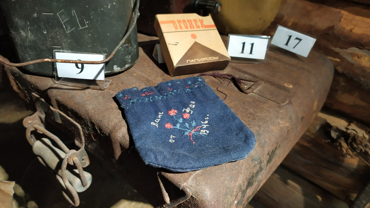 В землянке, которая собрана в зале воинской славы Рузского краеведческого музея хранятся предметы быта времен Великой Отечественной войны. Среди вещей можно увидеть кисет – небольшой мешочек, затягиваемый шнурком.