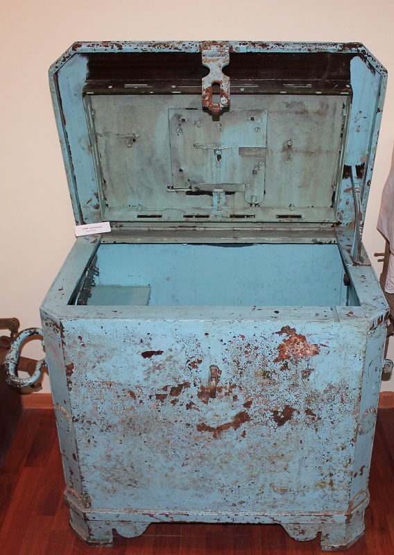 Наш сейф начала ХХ века. Неизвестно, каким хитроумным был замок на этом сейфе, но унести его точно было невозможно. Он чрезвычайно тяжёл. У него двойные чугунные стенки просыпанные песком.