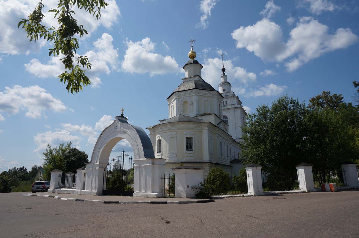 Современная каменная церковь на месте деревянной была построена в 1781 году тщанием купца Герасима Ивановича Нестерова и волоколамского помещика Николая Ивановича Арцыбашева. Престолов в ней четыре: в верхнем этаже во имя Покрова, в нижнем во имя святителя Димитрия Ростовского, с правой стороны во имя святителя Митрофана Воронежского, с левой – Сергия Радонежского.