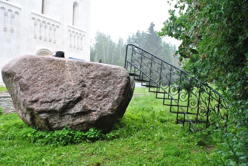 Недалеко от храмов находится самый большой ледниковый валун, когда-либо найденный в Подмосковье. Весит он около 55 тонн.