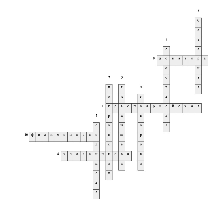 Краеведческий кроссворд №10. Улицы Рузы. Ответы.