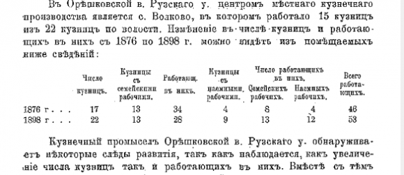 Динамику по росту числа кузниц за 20 лет с 1876 по 1898 гг. можно увидеть из таблицы.