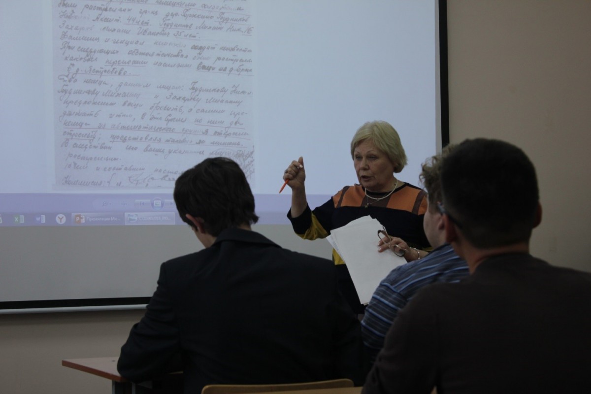 Завершил семинар рассказ Иноземцевой Марины Леонидовны о теме, над которой она работает уже не первый год – о Рузском земстве и его деятелях. От студентов поступило немало вопросов к нашим краеведам: как происходит выбор краеведческой темы, насколько интересна работа поисковых отрядов и многие другие вопросы. Как часто бывает на таких встречах, отведённых полтора часа, не хватило. В итоге интересной беседы было принято решение заключить договор о сотрудничестве между музеем МГОУ