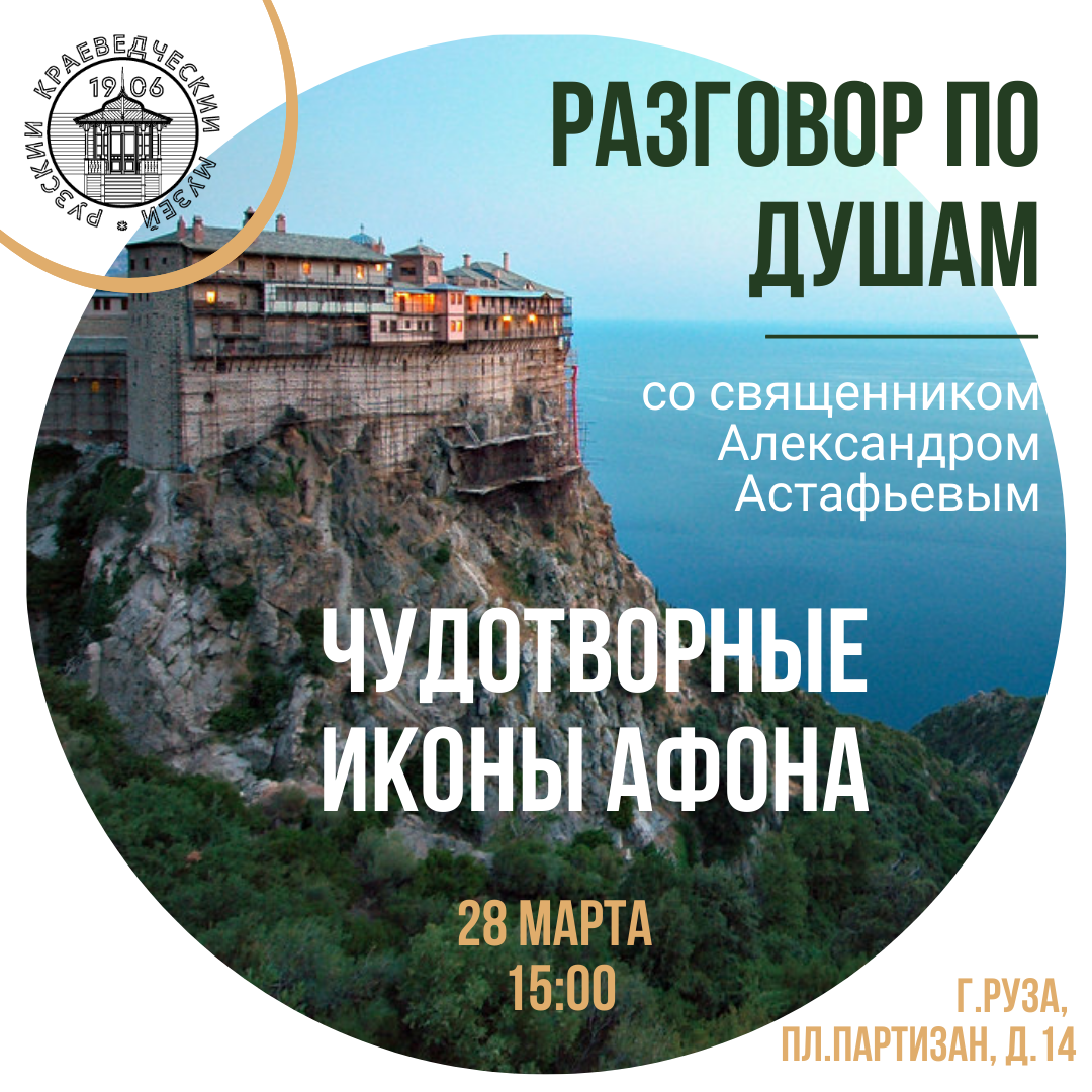 Тема мартовской встречи – «Чудотворные иконы Афона». Святой Афон почитается в Православной Традиции как земной удел Богородицы. По преданию, сама Пречистая Дева взяла его под Свое покровительство.