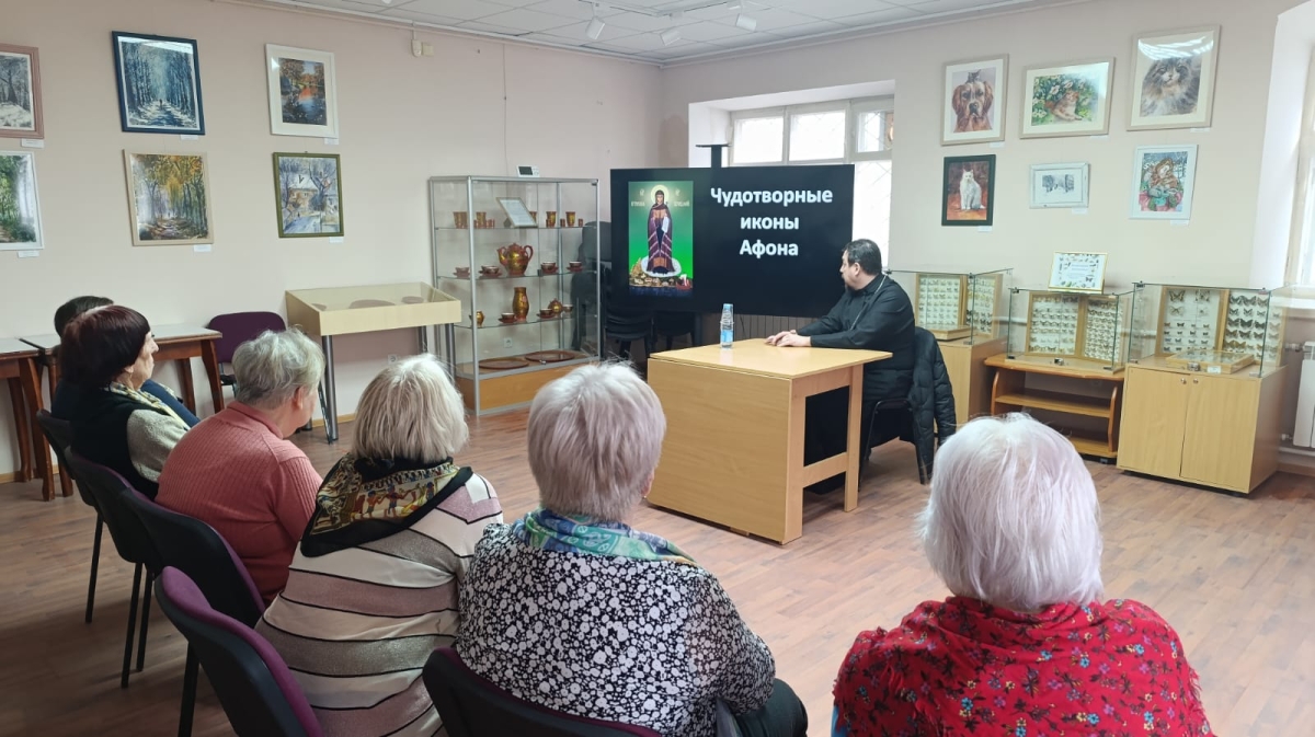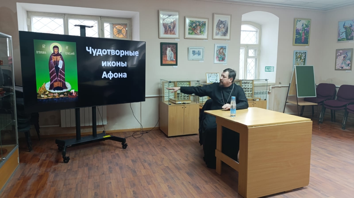 Отец Александр рассказал слушателям о чудотворных иконах и жителях Афона, поделился интересными историями, которые произошли с ним во время паломничества на Святую гору.
