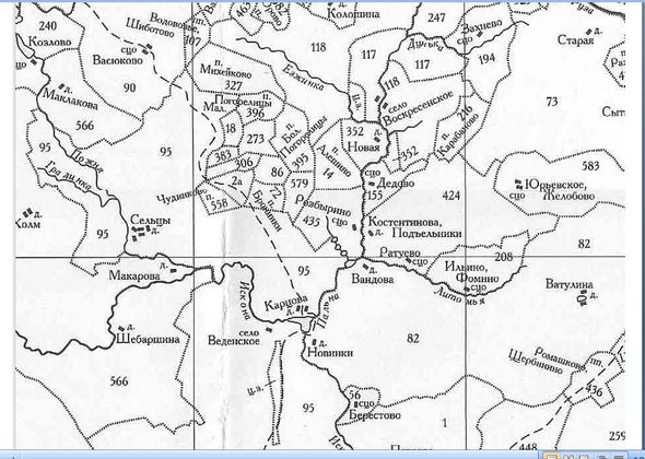 Фрагмент карты из книги Кусов В.С. Земли Московской губернии в XVIII веке