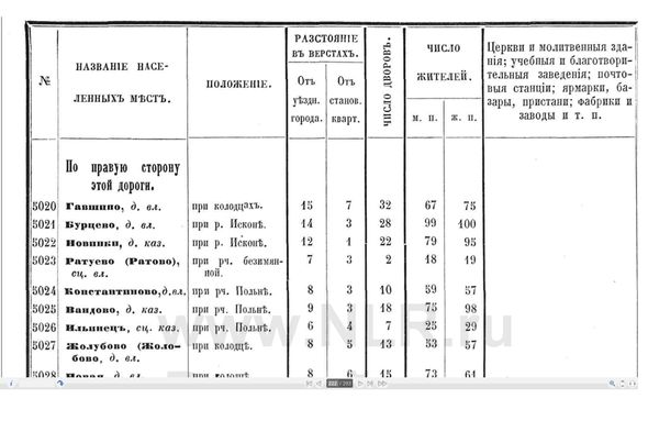 Вандова –деревня казенная при речке Польне, от уездного города 3 верст, от квартиры Станового 3 версты, Изб в деревне 18, душ мужского пола -75, женского пола 98.