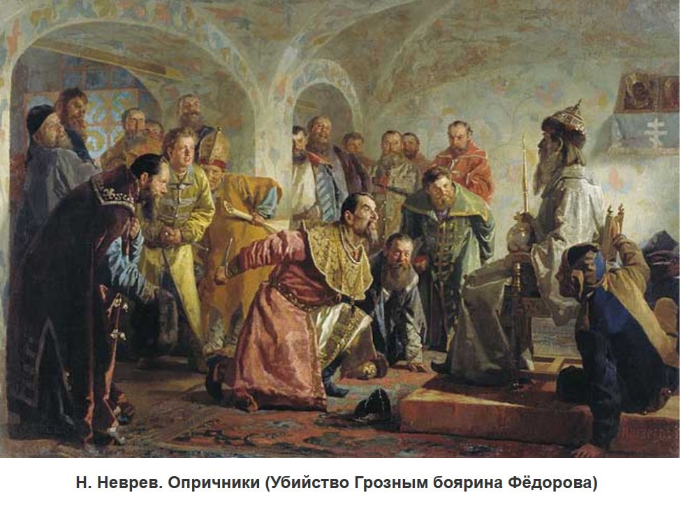 3) система внутриполитических мер Ивана Грозного в 1565-1572 гг. для борьбы с предполагаемой изменой в среде знати (массовые репрессии, казни, земельные конфискации и т. п.).